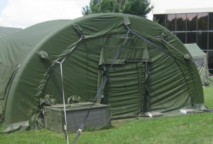This shelter is designed for connection to Type II TRICON containerized systems. Shelter includes cover with integral floor, one (1) personnel door/TEMPER vestibule adapter end wall, one (1) ISO (end) end wall, thermal liner and plenum, three (3) air beams, inflation assembly, bracing and transport cover, and two (2) TEMPER vestibules.